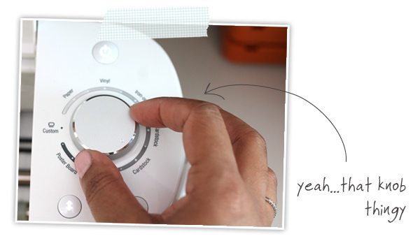 I’m all about the technical terms, people. That knob thingy makes all the difference in the world. I remember when I had my old Cricut and had to make all sorts of guestimations about pressure and speed. It was a royal pain in my tuchus, which is why I never used the machine. The knob thingy on the Explore makes it really easy to get the right speed and pressure for every material. If you are using a special material like thick chipboard or leather, you can place the knob on “Custom” and then choose from a drop down menu of materials and select the one you’re using. You really can’t screw it up. The knob thingy is the best.