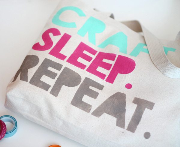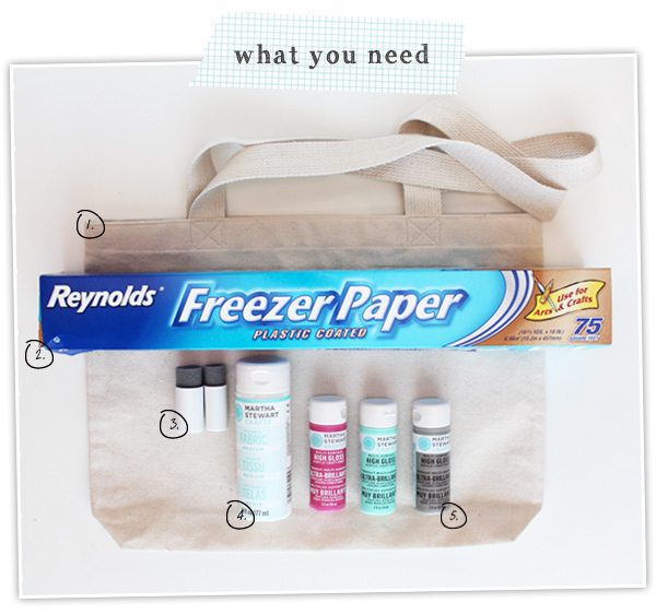 The book actually contains several ideas for creating customized canvas totes…which is exactly where I got the idea to create a sassy craft tote using acrylic paint and freezer paper. Now…many of you are likely very familiar with using freezer paper as a stencil but this was my first time doing it. It’s super easy to do.