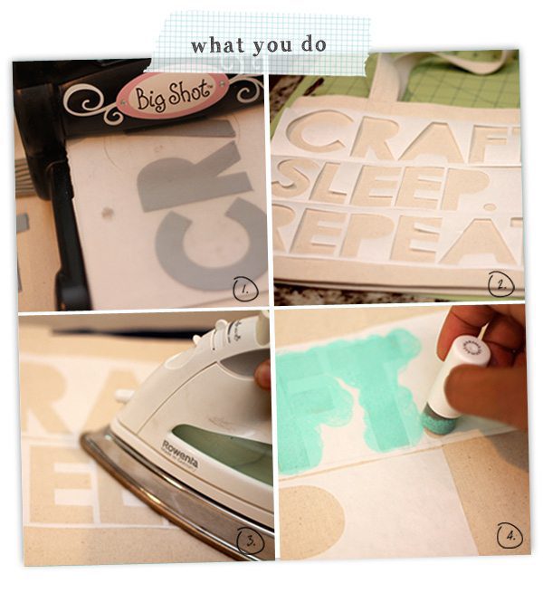 {3} Using your iron the DRY setting (no steam!) iron the words into place until they are well adhered to the canvas surface