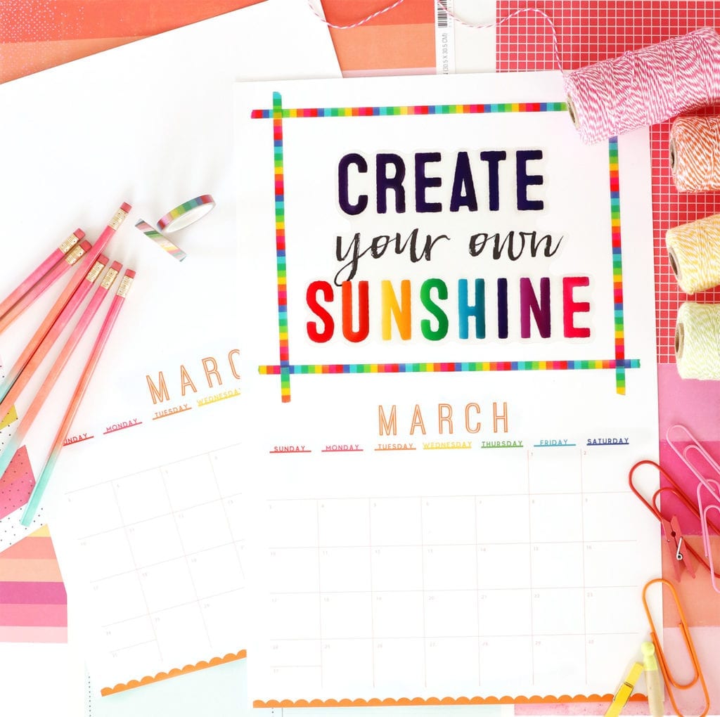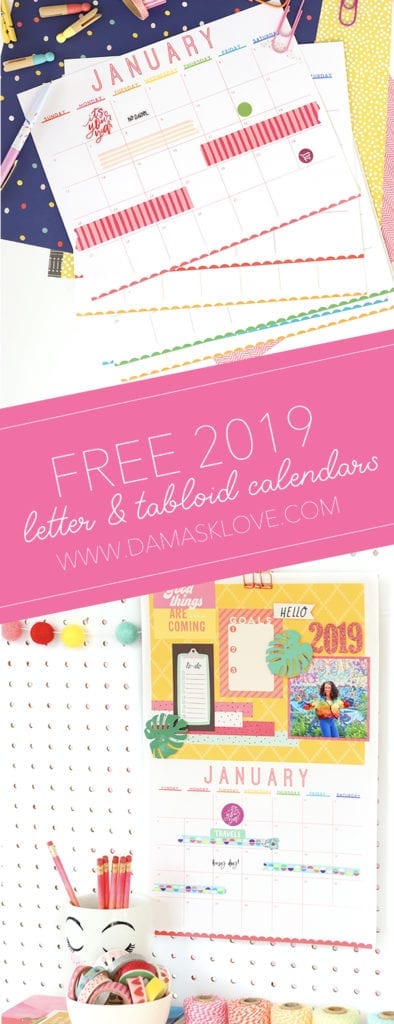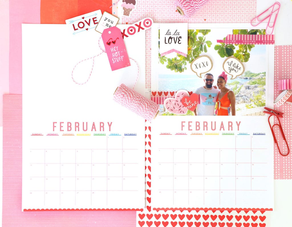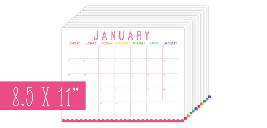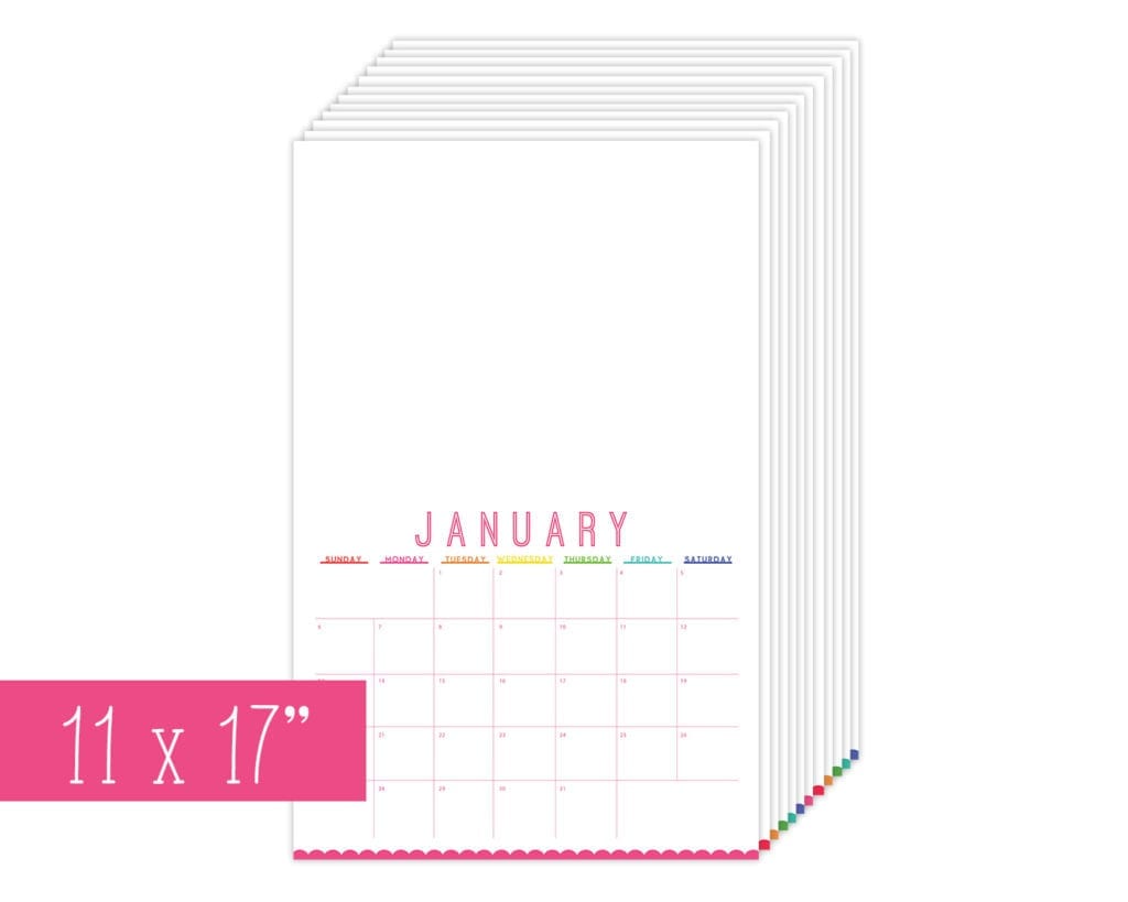 We’ve got two version of this calendar. The letter-sized version is a quick, easy way to print and go. The tabloid-sized version (11×17″ for those who aren’t into paper-sizing-lingo) features a calendar along with some blank space for you to decorate however you want! So, whether you are a DIYer or just need a good basic calendar, we’ve got you covered!
