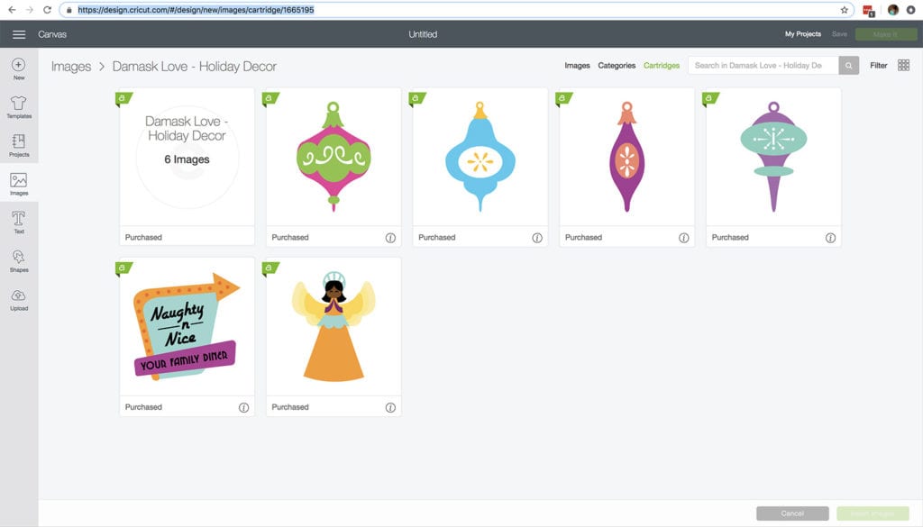 There’s a new Cricut image collection in town and it’s got Damask Love written all over it! For this holiday season, I wanted to give you something bright, bold – with a little retro style thrown in. The result is the newest Damask Love digital image collection available right now in Cricut Design Space! And if that’s not good enough for you, this new collection is part of the Cricut Access Subscription which means these images are bundled in with the other 50,000+ images available with the subscription! You can learn more about Cricut Access HERE.
