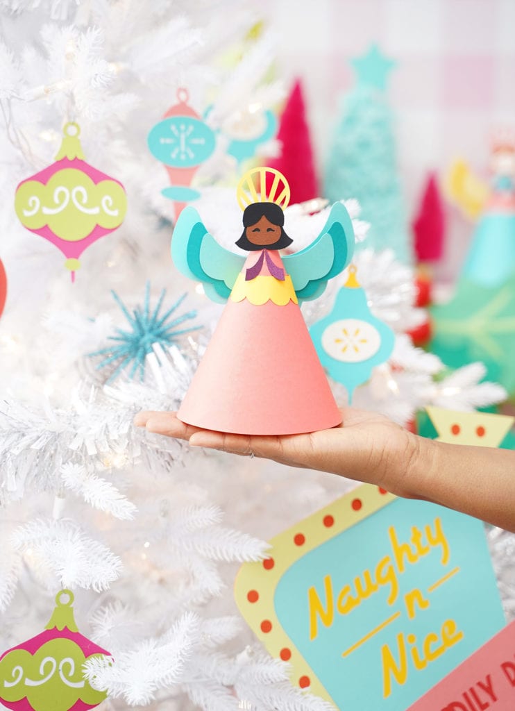 - Cut all the layers from paper. I would definitely recommend paper for this particular project. You can get really creative with the angel by customizing her face and hair!