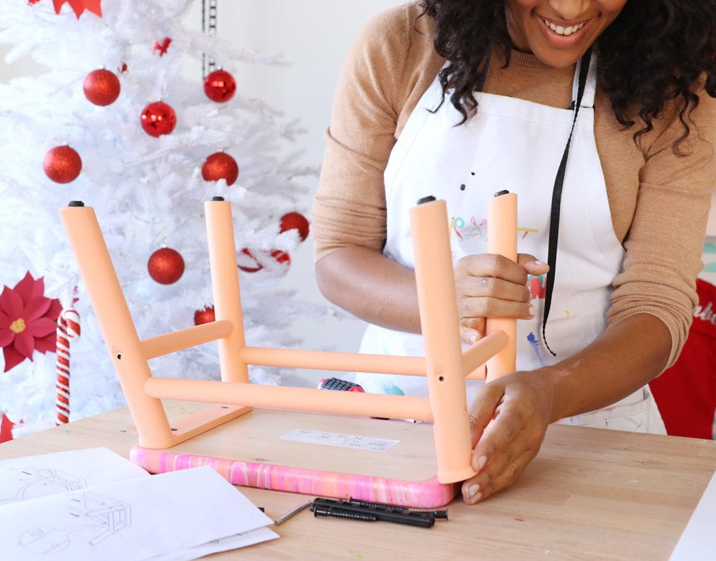 Set the stool top back on the paint points and allow to dry completely for 24-48 hours.