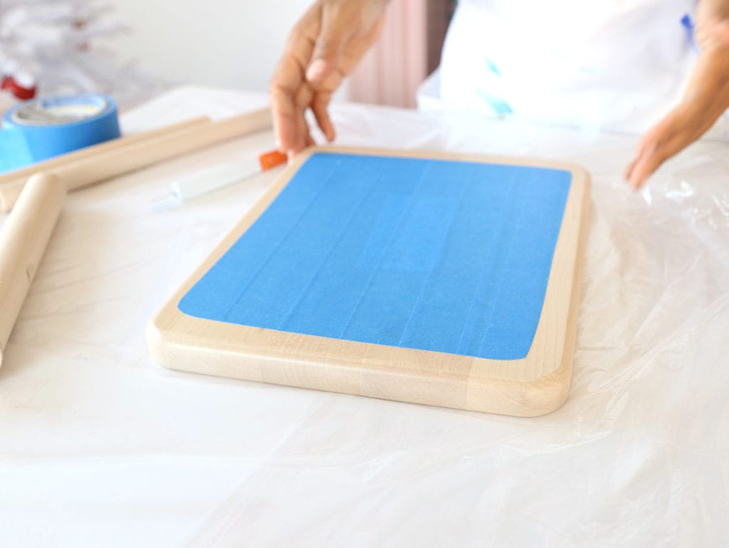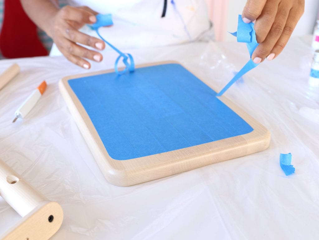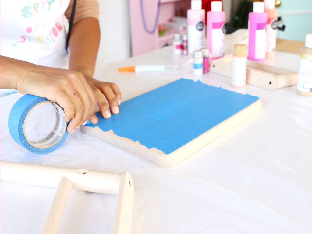 Use painter’s tape to cover the bottom of the stool. I’m using the Vilto stool from Ikea. It’s inexpensive and easy to work with for this project.