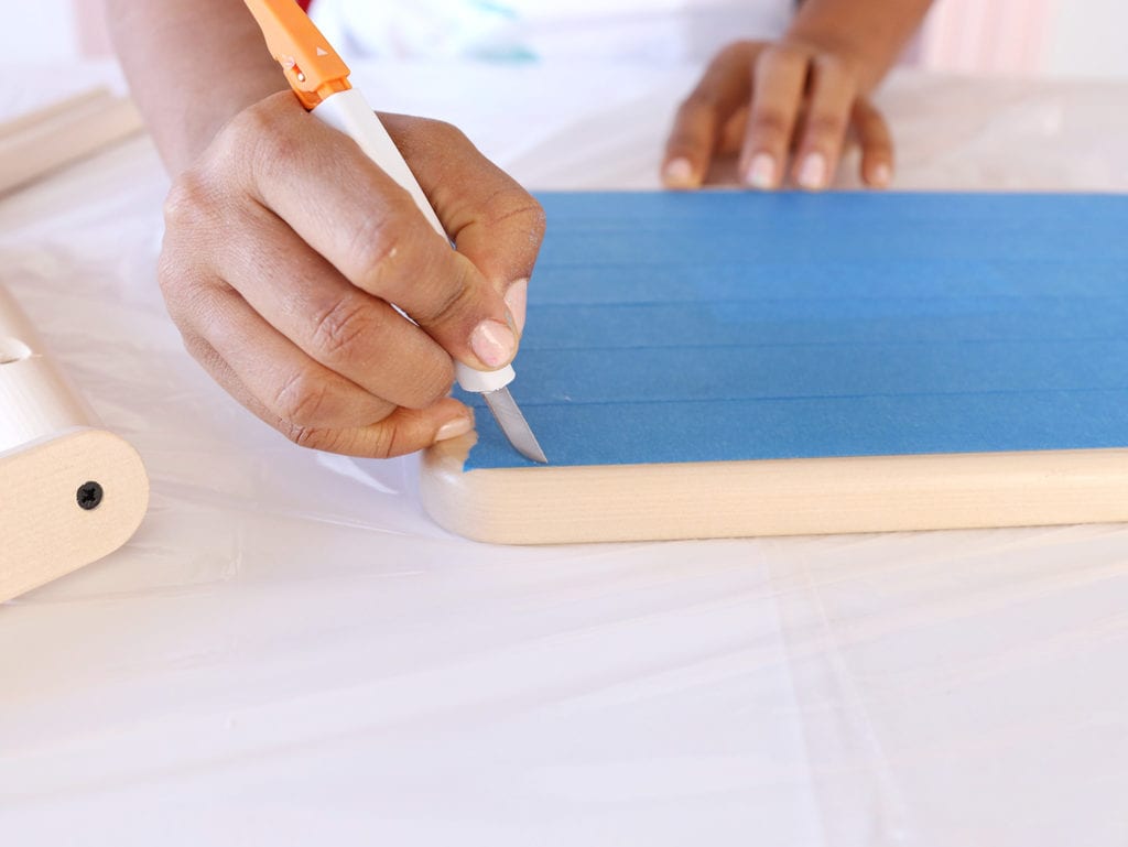 Set out a few painter’s points, and place the stool with the tape side down, directly onto the points.