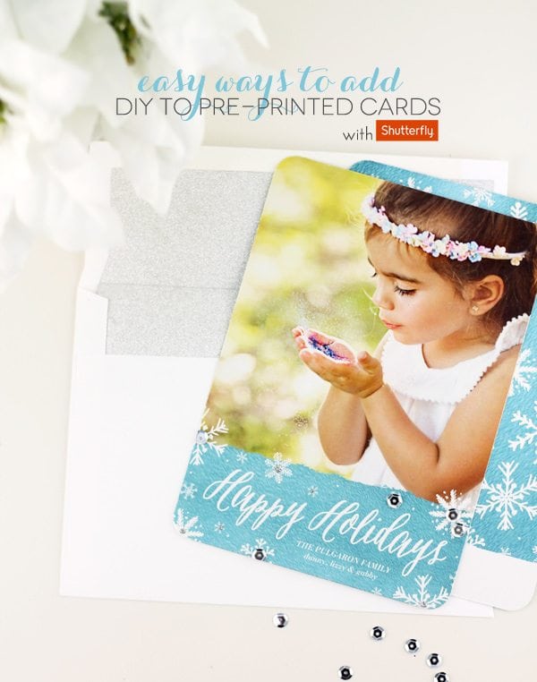 Such is my yearly battle with holiday cards. I’m fully capable of making them by hand – but do I really want to? When you’re a die-hard DIYer, it can be really tough to relinquish control but sometimes it must be done.This year, I am glad to relinquish control because Shutterfly has got my back. Their holiday stationery is totes adorbs and there are a million different styles to choose from…and to satisfy my need to DIY, I’ve come up with a few super simple ways to add some handcrafted goodness to their designs. It’s a win win for everyone!