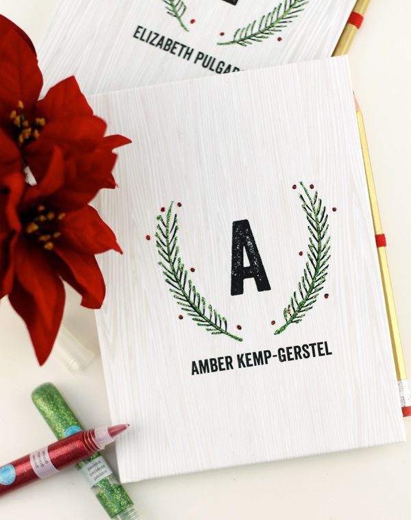 This next little project is all about notebooks – and you know how much I love a notebook! Shutterfly offers a ton of notebooks and journals that you can personalize with monograms and photos. With the holiday season upon us, I was drawn to the Woodgrain Monogram Journal. The simple design is perfect for year round, but the design is also perfect for a little holiday DIY-ing.