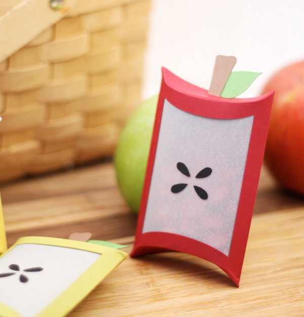 Now typcically, Sundays are usually reserved for “Easy Like Sunday Morning” but today I’m throwing a wrench in the plan with a post that I’m sharing as part of the Cricut Design Star competition. Along with a ton of other crafty bloggers, I’m sharing a party-worthy project using my Cricut Explore. Last month, I gave you this awesome project which ended up being chosen as of the the Top 10 Favorites! Let’s see if these apple-licious pillow boxes are as much of a hit!