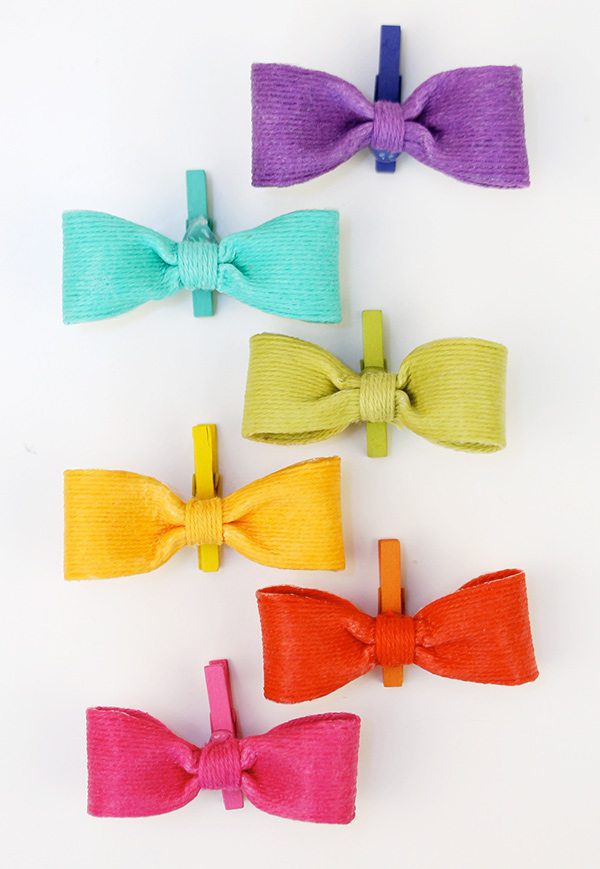 My guess is that you can use your creative brain to come up with lots of cute ways to put these to use. If you’re like me, you’ll first need to set them aside for a few days just to admire and stare. You know how that goes. When you’re done admiring, you can do what I did – grab your hot glue gun and adhere them to matching mini clothespins. Totes adorbs, right?