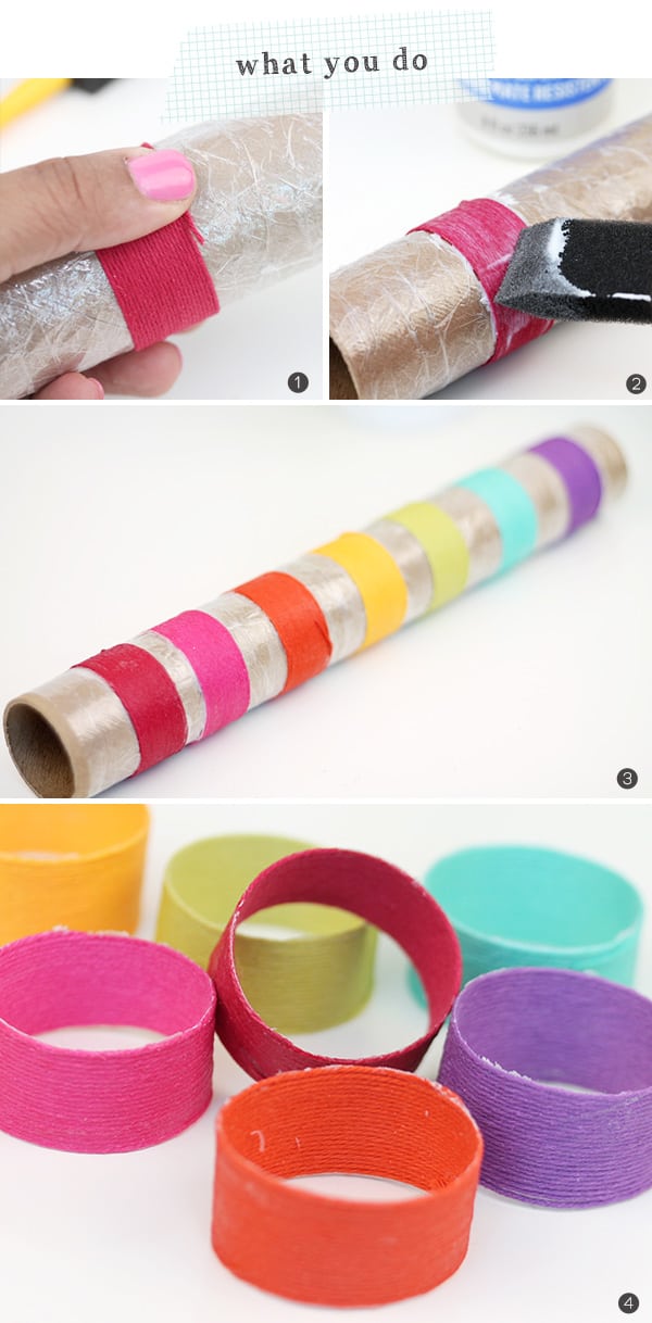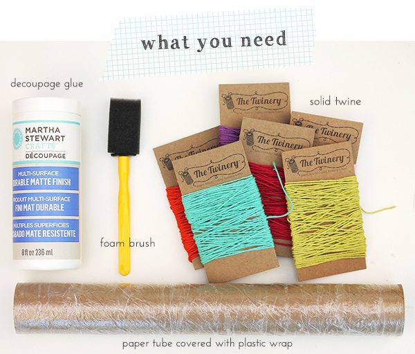 {1} Wrap a tight coil of bakers twine around the paper tube. The coil should measure about 1″ wide.