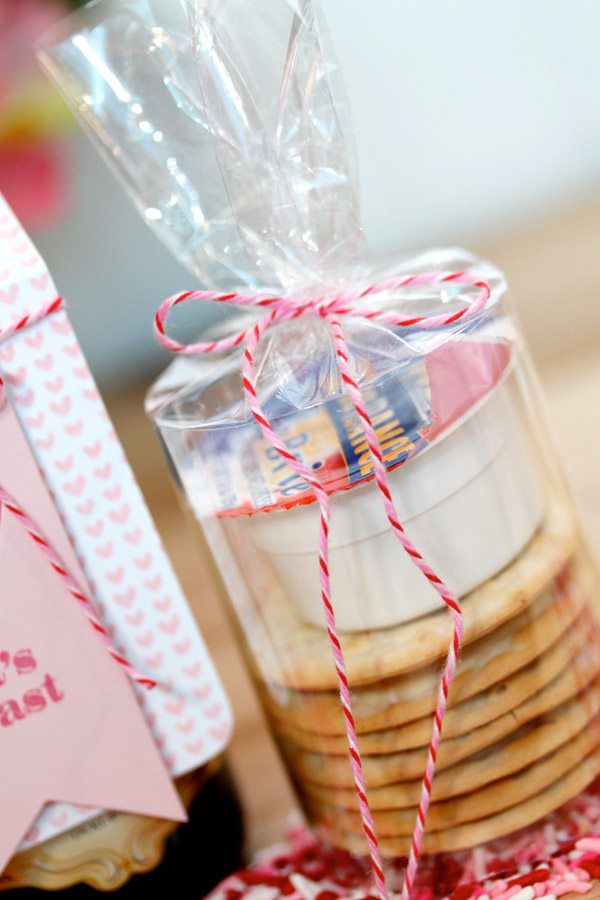 Now if you really wanna show out and make this gift ensemble special – add a little package of crackers and cheese! I found some mini containers of brie at the grocery and thought they were the perfect pairing for this project! I wrapped the brie and crackers in some cellophane, then finished it off with some festive twine.
