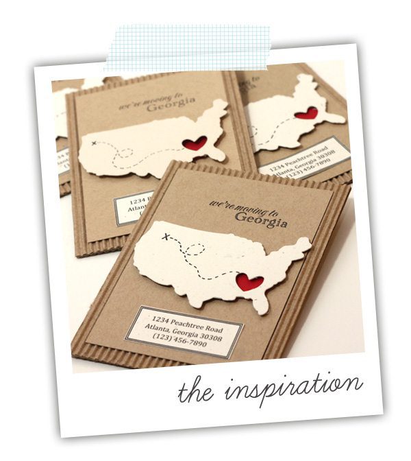 The inspiration came from this moving announcement project, where I featured the State to State die by Clear & Simple Stamps. I mounted the die onto corrugated cardboard cardstock, which you can likely find at your local craft store. I purchased mine at Michael’s in a 12×12 sheet.