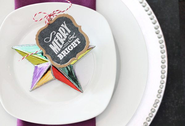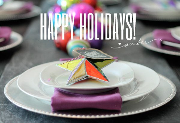 The last part of my holiday decor includes our dining table which I jazzed up with easy placesettings. Instead of using the Star Ornaments on the tree, I put them onto the plates as a pretty favors for our guests…you know….the one’s who will be showing up in about a month or so!