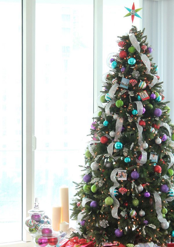 I’m no professional when it comes to decorating a Christmas tree so, I kept it pretty simple by using the Jingle Brights 2″ Ornaments and the 3″ Ornaments with Pattern . A roll of silver wired ribbon was great for making some pretty cascading garlands down the tree.