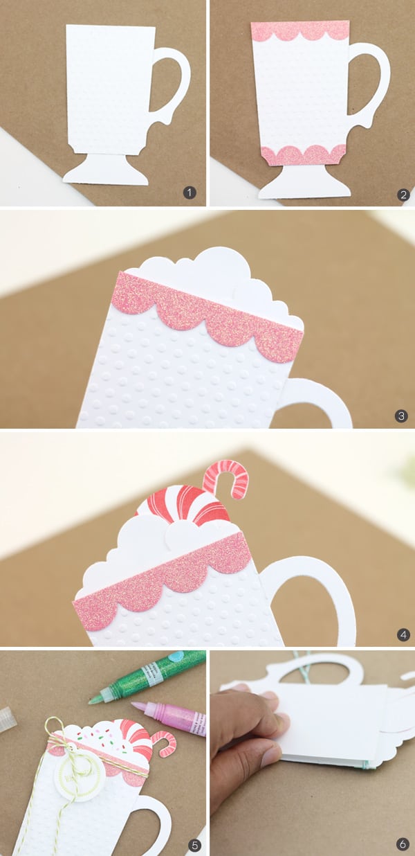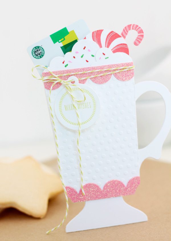 - Adhere the second mug die cut to the back of the first. Adhere all edges except for the top edge. This will create a pocket where you can insert a gift card.