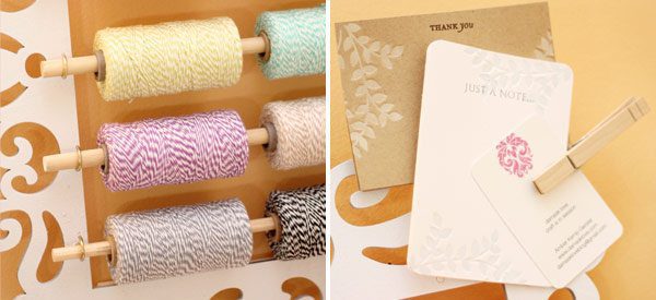 My twine rack does double-duty by also holding a few flat notecards and business cards that I can grab quickly when I need to.