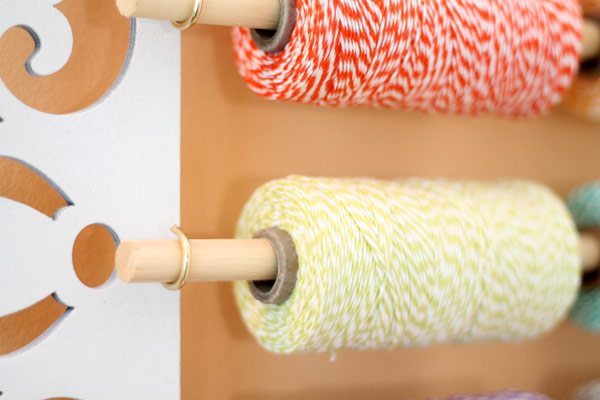 First order of business, the pile of baker’s twine spools that took up residence in the middle of our floor. Very pretty to look at. Very messy. Very annoying to husbands who don’t quite understand the awesomeness of baker’s twine. One day, he will learn.