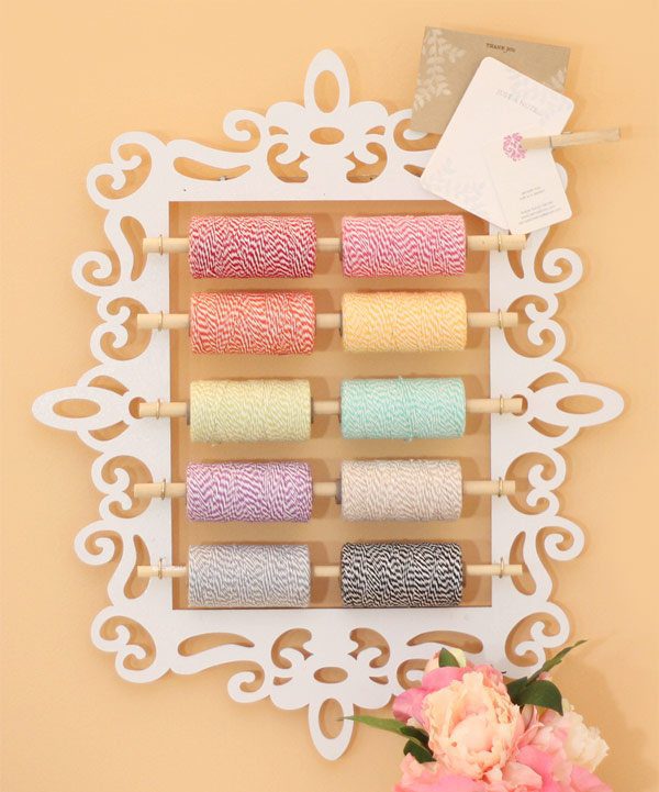 Once you hang your frame on the wall, you’ll see just how useful those square dowels are to making this functional. Without the dowels on the back, the frame would be flush to the wall and the spools would not have room to rotate.