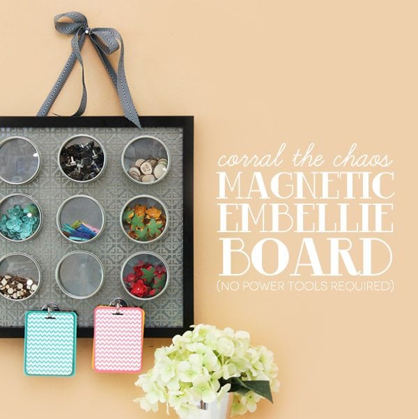 Confession: I much prefer an afternoon at Home Depot than an afternoon in a craft store. There is something about all the potential of those raw materials. I spent a good fifteen minutes perusing the stove vents to see what I can come up with. I got nothing on that one…but I did come up with this project which is exactly what I need for my overflowing collection of embellishments.