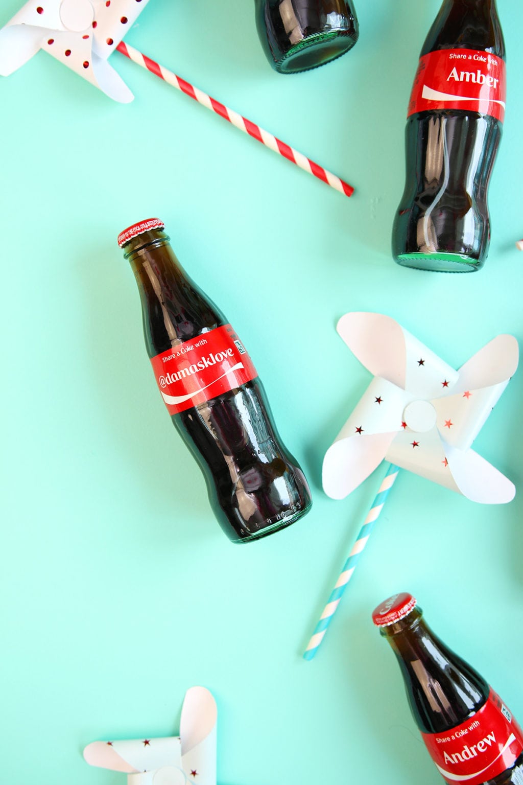 Well, here’s the good news, I don’t have to hunt anymore. Turns out the Share-a-Coke site lets you customize your own 8oz glass bottle with your own name or a cute saying. It’s great for that summer BBQ you’re planning (Share-a-Coke with a Grillmaster, anyone!?) or for those of you with unique names (Bonquiqui, I’m talking to you, girl!). Let’s a take a look at how I’m dressing up my Share-a-Cokes for this summer season!