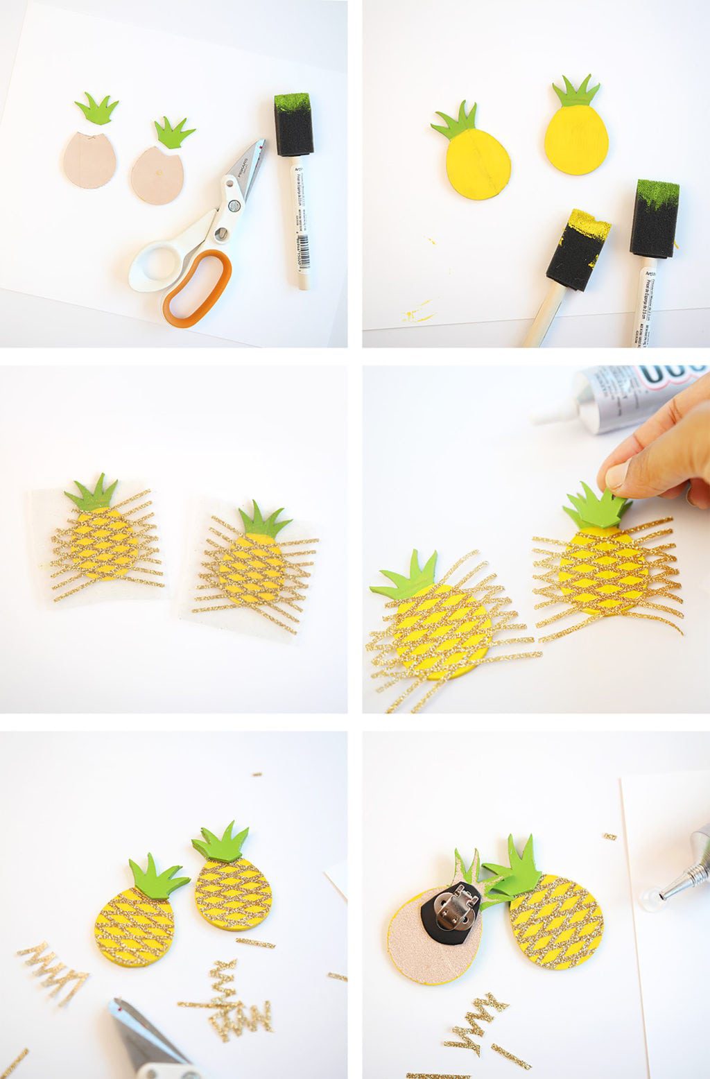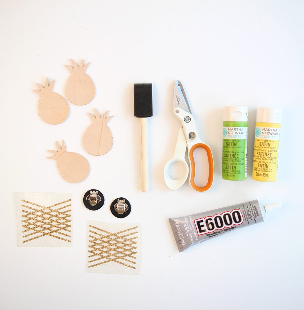 - Four pineapples shapes cut from tooling leather and glitter grid cut from gold glitter iron on. Both using the Cricut Explore.