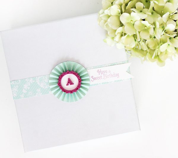 Last up – a very cute monogram medallion in lieu of a bow – and if you’re interested, there may just be a quick tutorial coming soon on how I created the scroll frame and the letter, too!