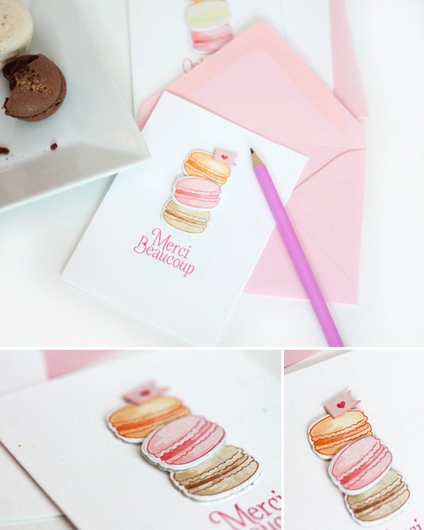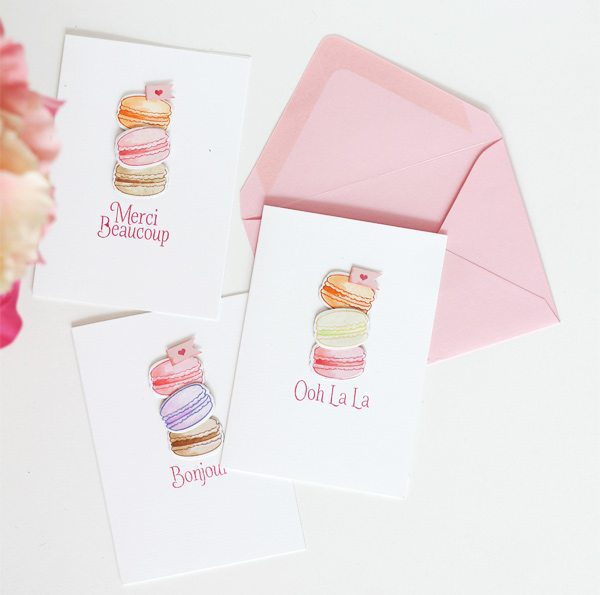 Of course there are cards! I stamped the macarons onto die cut piece of Craft-A-Board (man, I love that stuff!). This gave each cookie a little dimension on the card.