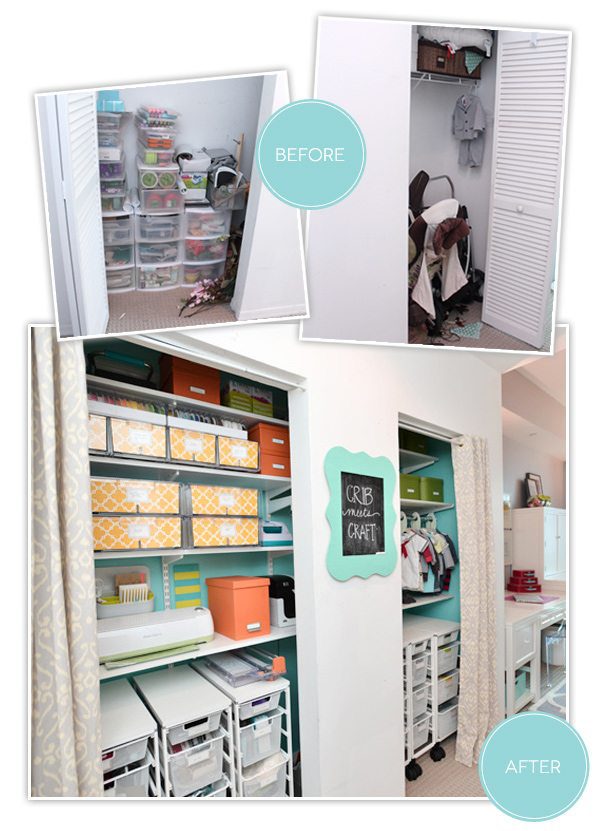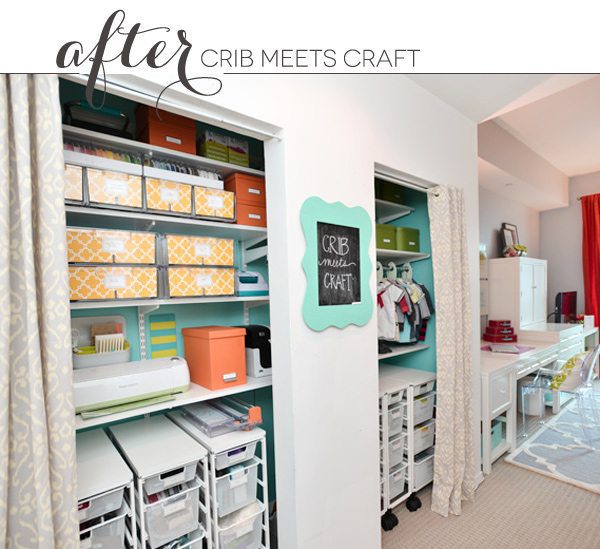 Now let’s take a peek on the baby side of the Crib Meets Craft closet.