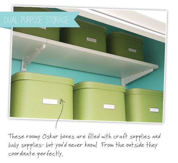 The Oskar Boxes are incredibly roomy and have given me a great place to store baby clothes that he won’t be able to wear for a while. The boxes are also perfect for all those Martha Stewart paints that I seem to be hoarding!