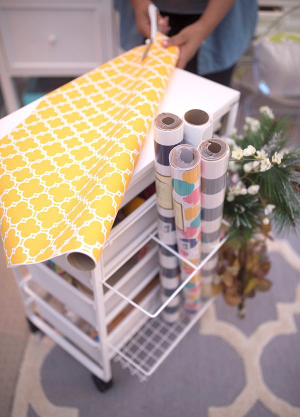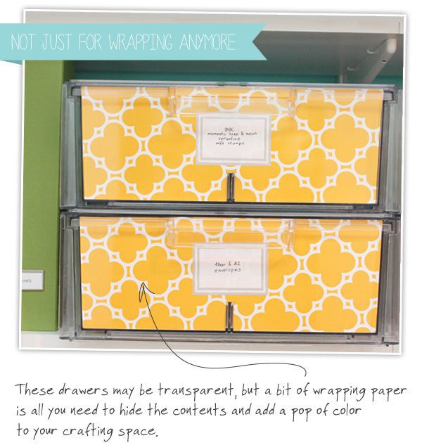 On one of the drawer units, I added a Gift Wrap Organizer, which is the perfect spot for organizing those large photo props that used to live on the closet floor. Also, whenever I need to wrap a gift, the cart pulls out and provides a great work surface for cutting paper and wrapping up gifts. I have a feeling this will be super useful with the upcoming holiday season!