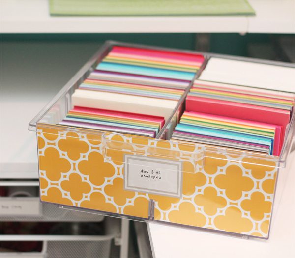 In addition to the clear drawers, I also used Stockholm Magazine Files and Stockholm Photo Storage Boxes to keep things in place. I really love that everything has a home. It doesn’t hurt that these also come in pretty colors. The large Stockholm Desktop File is another great solution for storing cardstock.