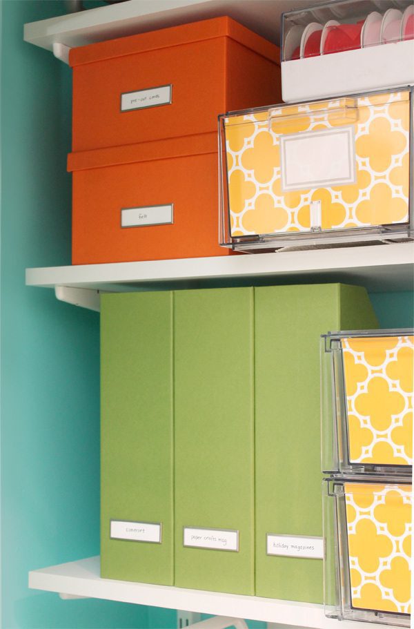 3. Ugly boxes galore! This is what happens when you have too many supplies and too few places to store them. Things end up being stored in cardboard boxes and stashed wherever they’ll fit. Now, there is nothing inherently wrong with cardboard boxes, but when you love pretty things the way I love pretty things …cardboard boxes are just not cool.