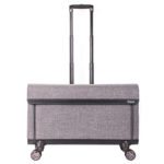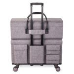 These bags are BIG! My friends and I joke around about using the Rolling Craft Tote as a stroller. With that said, you can carry a ton of supplies! At my last workshop, I filled my Rolling Craft Tote with four 12×12 paper pads, six cutting mats, 8 rolls of vinyl, my Cuttlebug, 12 pairs of scissors, 3 extra Cricut blades, a paper trimmer, adhesives,…and two bottles of wine…just being honest. And there was still room for more. The only thing to keep in mind is this: the more you load, the heavier the bag will be, duh. Thankfully, the 360 degree wheels make it easy to roll around.