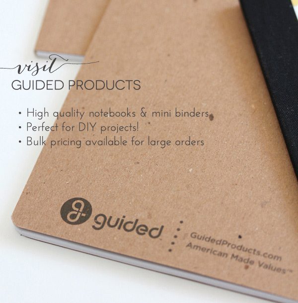 For the notebooks, I opted for 5×8″ notebooks from Guided Products, an awesome company that sells simple paper supplies all created from recyced materials. They even sell those coveted kraft mini binders that are popular for creating birthday binders! While you can definitely replicate this project with traditional composition notebooks, I love that the notebooks from Guided Products don’t contain any graphics or printing on the inside of the covers, making for a clean and neat finished product.