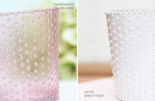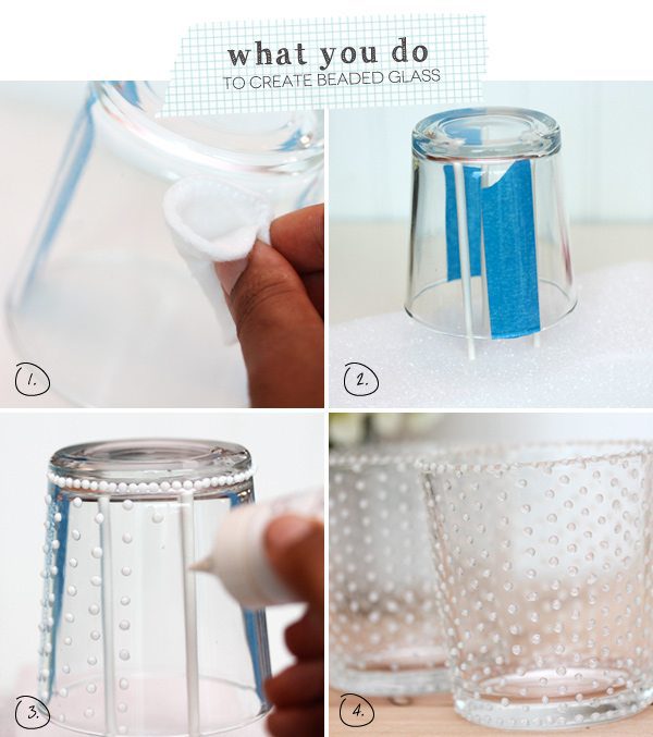 {3} Shake the contents of the bottle until they are well mixed, then screw on the paint sprayer and spray paint your beaded glass project. Alternatively, you can simply spray your glass with traditional white spray paint for a different look.