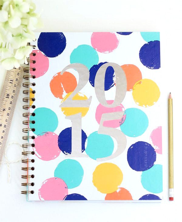 To create a bold and dimensional cover for this planner that mimics the look of Sugar Paper’s I used my Cricut Explore to cut large numbers from a piece of chipboard. I’m always so impressed with how perfectly the machine can handle thick materials like chipboard.