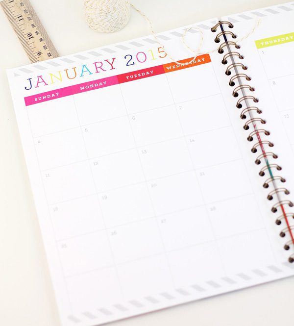 Now for the innards for this planner. I wanted something colorful but I also wanted something easy, which meant I had no interest in designing a printable myself…and that’s where Etsy came in to save the day! I searched for 2015 calendar printables and came upon one that is so cute and colorful that you probably need to get one for yourself.