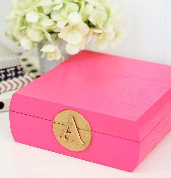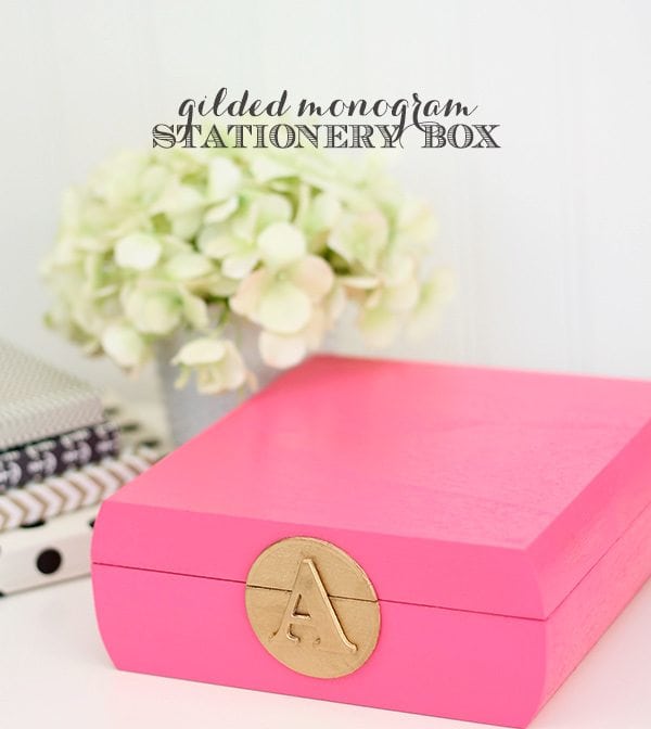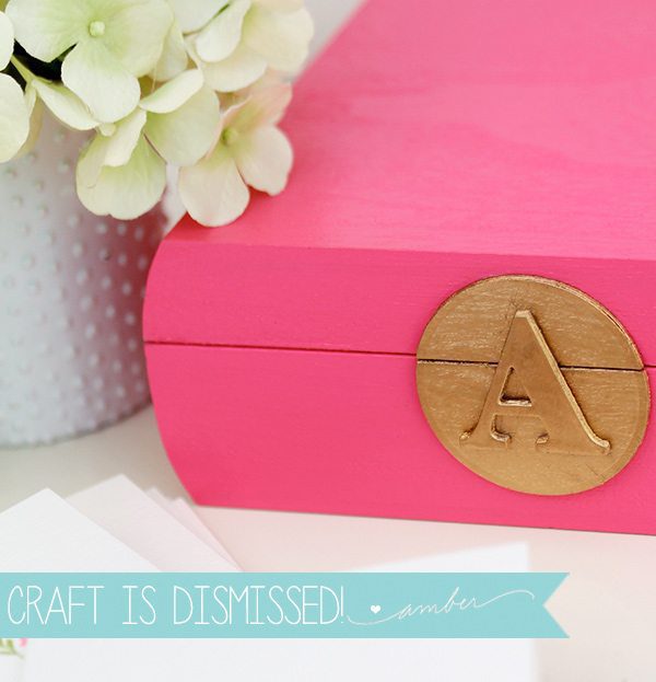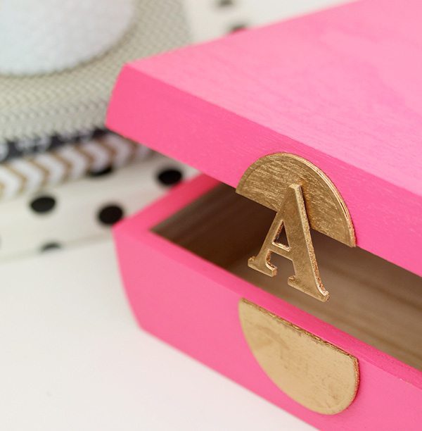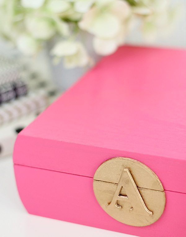 Once the box is assembled as shown above, you’ll just need to adhere the monogram which should be painted in gold gilding as well. To make sure your box opens and closes – just adhere the monogram to the top portion of the box.