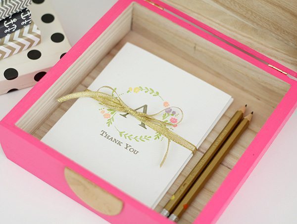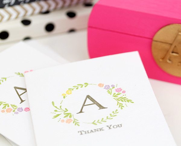 Being the paper lover that I am, I decided that this pretty box will live in my craftroom and hold pretty stationery. I created a few quick letterpress cards to put inside.