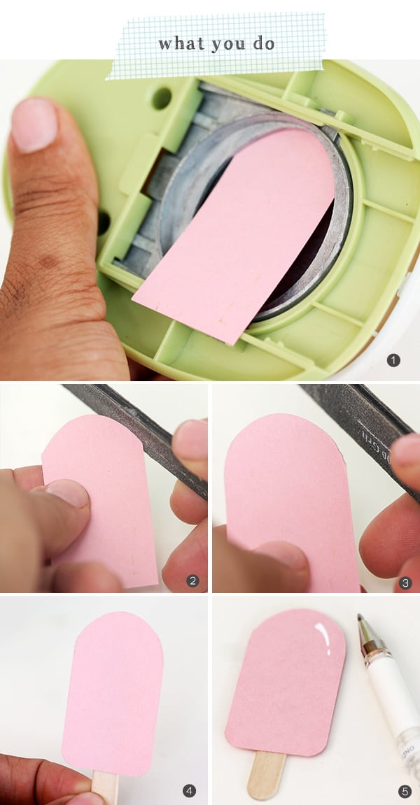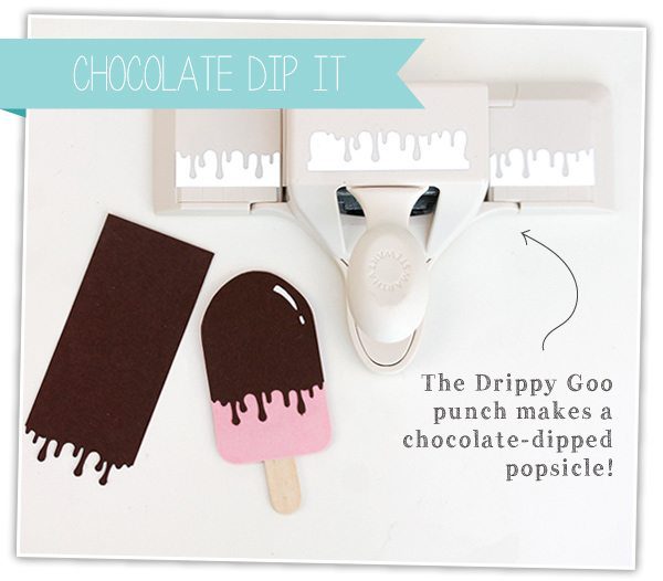 Once you’ve got the punching technique down, the fun starts as you start to design your favorite flavors. You can get really creative here and combine stripes and embellishments. My favorite flavor is definitely the red, white and blue bomb pop. I could eat those for days! You can also dip your pop in chocolate using the Drippy Goo punch from Martha Stewart.