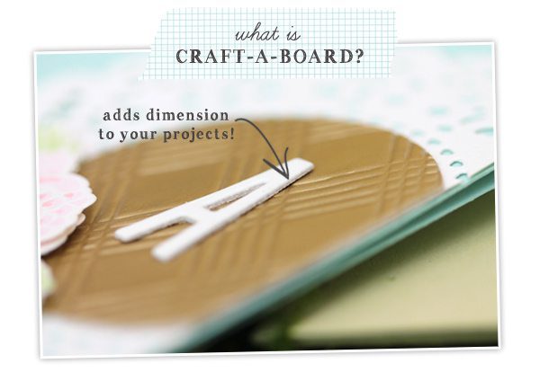 Genius in it’s simplicity, Craft-a-board adds dimension to the elements of your paper crafted projects. If we’re being honest, when I first saw it I thought – “hmmm, I probably don’t need this if I have dimensional adhesives.” After using it though- I’m sold. It die cuts easily and unlike dimensional adhesives (e.g. foam dots), Craft-a-board gives you dimension without the risk of dents in your design. It’s also great for adding dimension to itty-bitty die cuts that are a pain to adhere with foam dots.