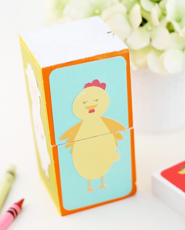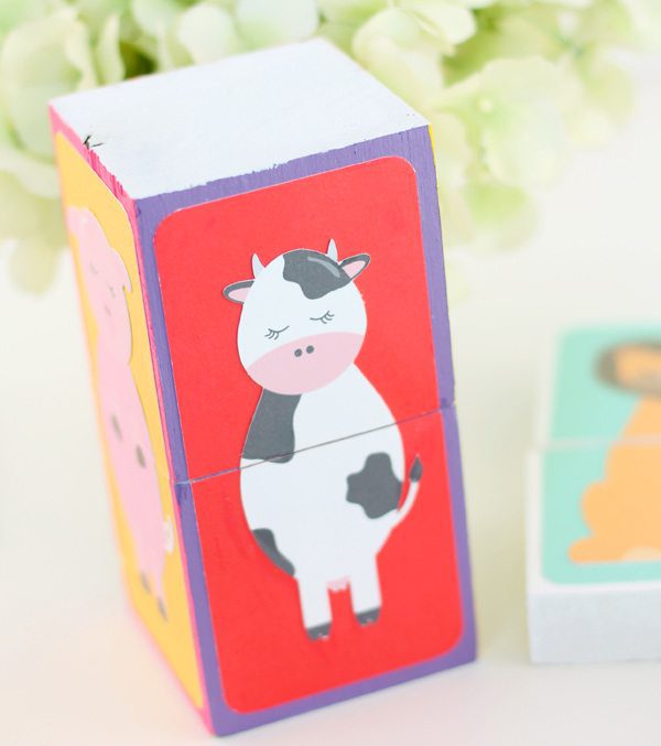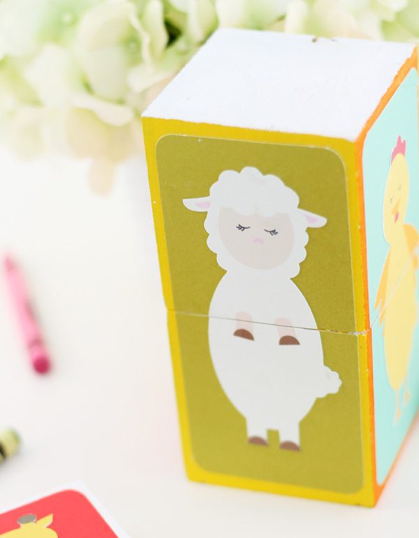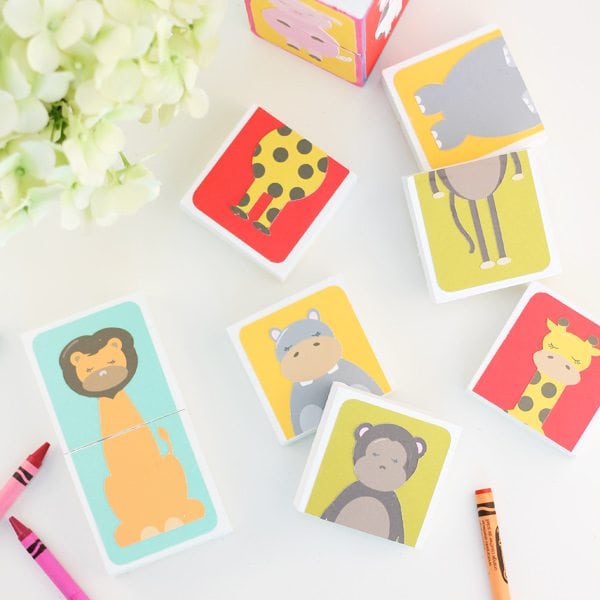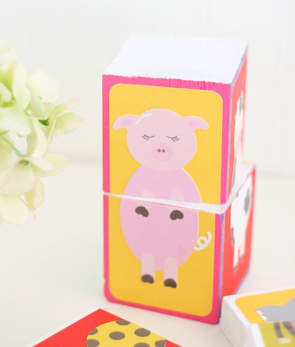 This was the beginning of my hangover. I spent the entire weekend designing images that I could print and cut. Which is what brings us to today’s project – the cutest little animal blocks you ever did lay eyes on. With this baby swimming around in my tummy, I couldn’t help but design some kid-friendly graphics and this simple DIY is a great way to put them to use. Here’s how it’s done: