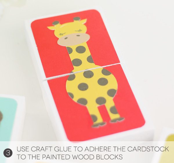 Last up, you’ll just need to apply a bit more glue to the colored paper and adhere each piece to the wood blocks.
