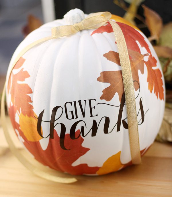 I will also craft with pumpkins. Gladly. This project is easy, but oh so pretty. It’ll be a great addition to your Thanksgiving decor – because who said pumpkins are just for Halloween?!