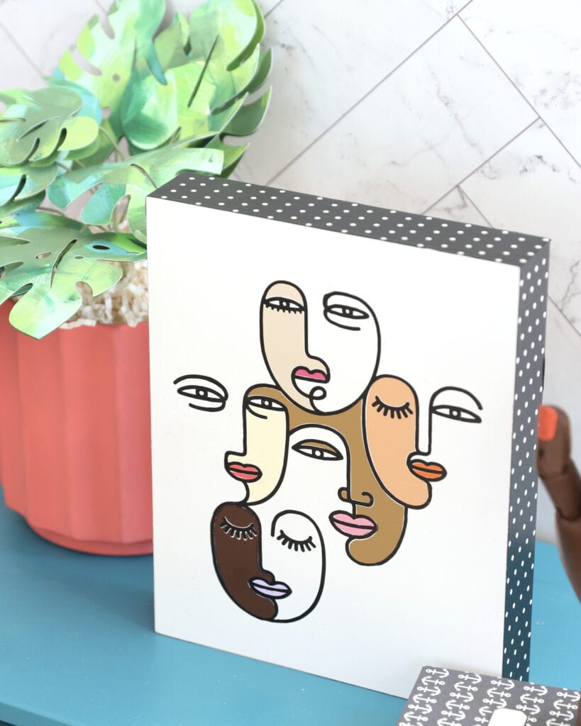 - I used the Cricut Joy for my artwork, but the Cricut Joy can only accommodate projects that are 4.5″ across. This is why you’ll see a version of this project where the faces are split into two. This will allow you to cut it on the Cricut Joy.