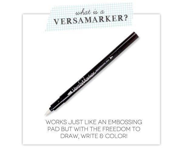 I’m about to put another bottle in the books after discovering my new favorite crafting tool…the Versamarker Embossing Pen. For you experienced embossers, you can imagine how great this little pen is. It’s not new to the market, but it is new to me – so I’m here to share a simple project with this gem of a pen.