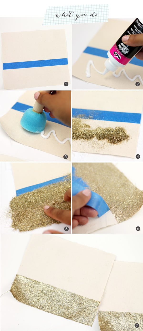 For a while I’ve been on the hunt for a way to apply glitter to fabric without having it flake off constantly. Welp. I found it! Tulip Glitter Bond adheres glitter like none other.