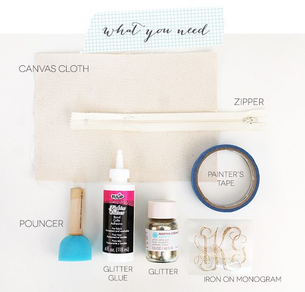 To create a the glittery finish on your pencil pouch, you’ll need a few specialty tools.