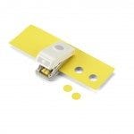 - cut the black cardstock into a thin strip, then punch it with the 1/2″ circle punch to create the shape shown
