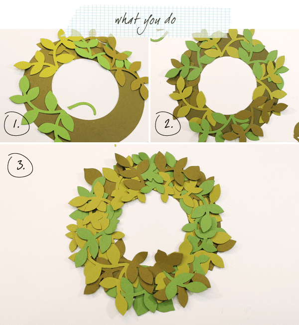 3) Fill in the gaps with smaller leaf die cuts until your wreath is complete.